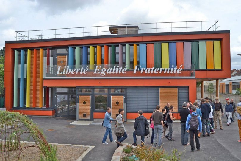 Diese Vorschule, ein Strohbau mit begrüntem Dach, war einer der Höhepunkte der offiziellen Besichtigungstour im Rahmen des ESBG 2015 in Frankreich.