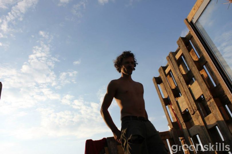 Von Greenskills in Aspern errichtetes Experimentalgebäude aus Europalletten (Konstruktion) mit Strohballendämmung.