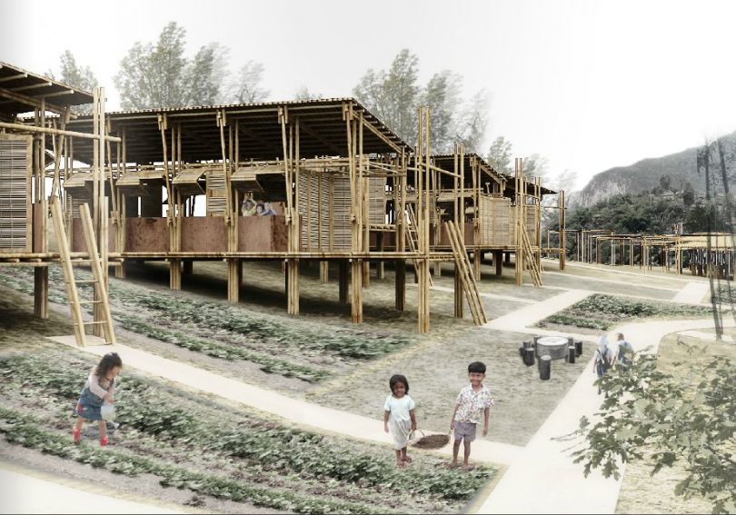 Diese 160seitige Online-Broschüre zeigt nicht nur die Pläne für ein Schuldorf-Projekt für burmesische Flüchtlinge sondern auch die Konstruktionen und Verbindungen, die mit Bambus möglich sind, im Detail. Dieses so schnell wachsende, stabile „Gras“ mausert sich zum nachwachsenden Baustoff Nummer 1 (natürlich ex aequo mit dem Strohballen), und die Möglichkeiten, damit zu bauen, sind riesig und faszinierend. Masterarbeit von Mercedes Sarua an der Politechnio di Milano.