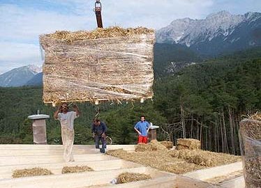Massivhaus, oberste Geschoßdecke mit Strohballen gedämmt: das ist übrigens eine einfache Methode, einen „schwimmenden“ Strohballenboden (ohne Zwischenkonstruktion) auf der Zwischendecke abzudecken. Im Abstand von ca. 50 cm Rauhschalungsbretter auflegen, danach eine zweite Lage Rauhschalungsbretter (oder Fussbodenhölzer) im rechten Winkel dazu darauf nageln. Für die von Rauchfangkehrern geforderte Begehbarkeit der Dachbodendämmung (zumindest) bis zu dem Putztürl des Kamins eine einfache, kostengünstige Methode, aber auch, wenn der Dachboden z.B. als Lagerraum verwendet werden soll. Schwingt ganz leicht beim Begehen, hält aber jedes Gewicht wunderbar aus.