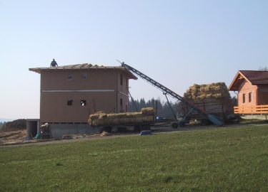 Interessanter lasttragender Strohballenbau mit Großballen im Erdgeschoß und Kleinballen im Obergeschoß errichtet...