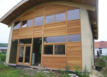 Strohballen, Lehm und Lärchenholz bilden die äußere Hülle des Strohballen-Einfamilienhauses. Sogar für die...