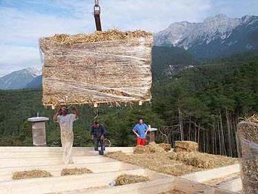 Die Strohballen wurden aus Brandschutzgründen mit einer Lehmschicht abgedeckt. Bilder: Roland Narr, www.glasholzlehm.at