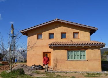 Die Form des Strohballen-Hauses ergibt sich aus der optimalen Form, die Sonnenenergie einzufangen. Laut Angabe der Architekten wurden 90% nachwachsende Rohstoffe eingesetzt, der ursprüngliche Plan, das Haus komplett energieautark zu machen, musste aber aus Kostengründen fallen gelassen werden.