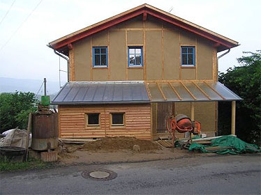 Strohballenbauprojekt des Architekten Matthias Böhnisch, der 1998 damit das erste Strohballeneinfamilienhaus in Deutschland gebaut hat. Die ersten Strohballenhäuser entstanden Ende der 1990er-Jahre. Der Architekt Matthias Böhnisch baute Häuser in Stroh überwiegend im Siegerland und Westerwald. Unter dem Namen TreibholzHaus bietet die Zimmerei auch heute noch Strohballenhäuser an.