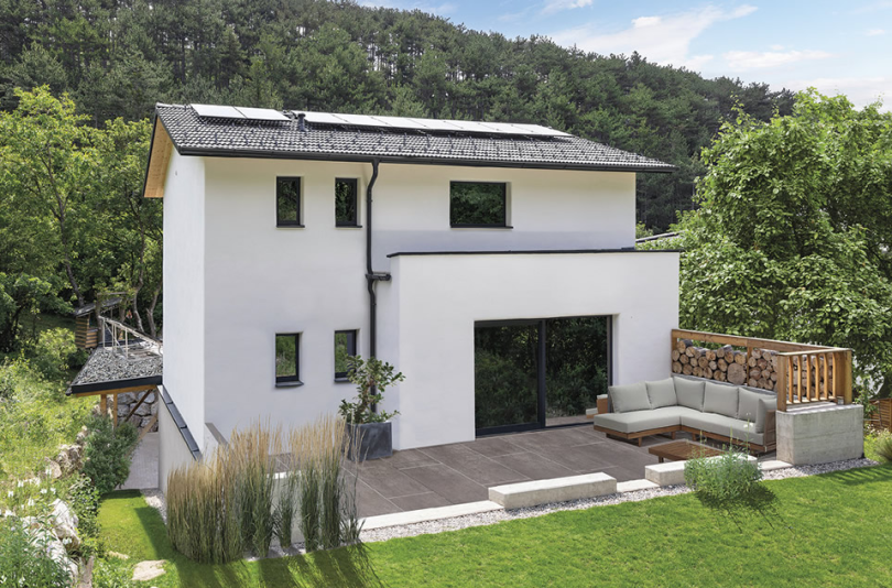 Dieser dreigeschoßige Neubau wurde in bewährter ökologischer Holzriegelbauweise – Strohdämmung, Kalkputz außen, Lehmputz innen – ausgeführt. Weitere Zimmerer-Leistungen waren die Massivholz-Kellerdecke, zwei Treppen mit Handläufen und die schallschluckende Akustikdecke mit hinterlegtem Baumwollvlies im von den drei Kindern bewohnten Obergeschoß.