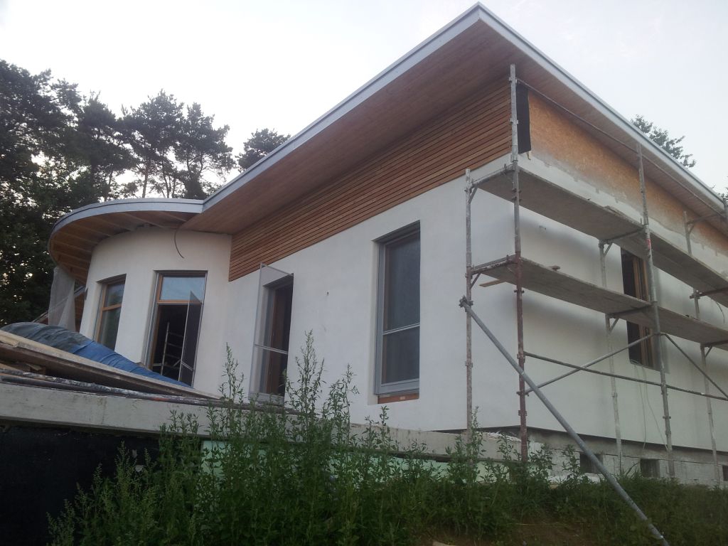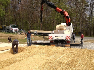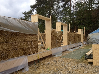 Bernhard und Antje Keimel-Lessing haben Nähe Eichkögl in der Steiermark das erste baugenehmigte Strohballenhaus errichtet (170 m2). Virko Kade zeichnet für den Strohballenbau verantwortlich. Laut Bernhard Keimel ist eine Bauzulassung einfach möglich, wenn eine Zimmerei die Haftung übernimmt. Sowohl die Bodenplatte als auch die Außenwände und die Decke wurden in Strohballenbauweise errichtet. Der Fassadenputz erfolgte mit Kalk. Innen wurde mit Lehm verputzt. Für die Zwischenwände wurden Holzriegel mit Leichtlehmschüttung verwendet.