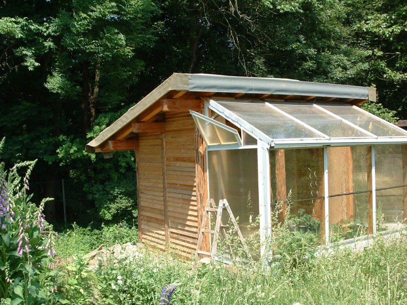 kleiner Rundständerholzbau mit Strohballendämmung im Selbstbau errichtet