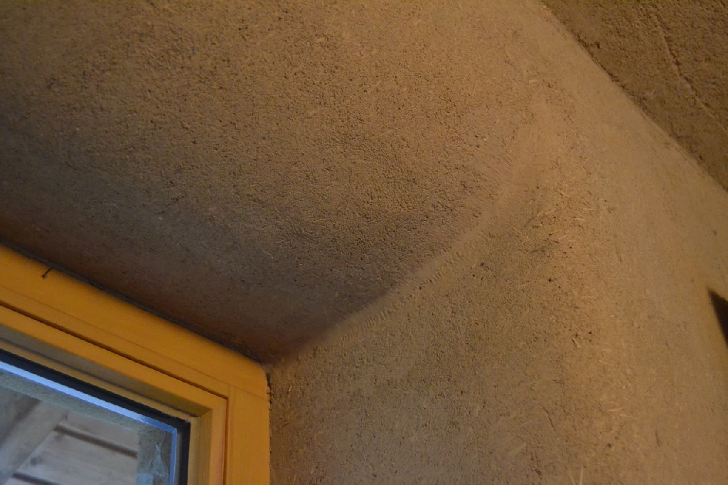 Innenausbau: Innenwände aus 10cm starken Strohlehm- Fertigelementen. Lehmputz d=1,5 cm