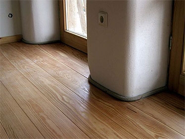 Fußboden: Hanf- Dämmung, Hobeldiele und Fliesen