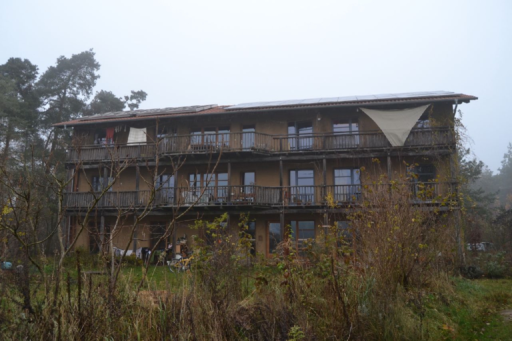 Dreigeschoßiges Gemeinschafts-Wohnhaus in Sieben Linden / Poppau, Altmark, Sachsen-Anhalt, in Holzständerbauweise errichtet. Trotz der hohen bauaufsichtlichen Anforderungen an ein Mehrfamilienhaus (Brandschutz) wird mit dem vorliegenden Projekt der Beweis angetreten, dass mit der verputzten Strohballen -Ständerbaukonstruktion auf umweltfreundliche Weise kostengünstiger, verdichteter, gesunder Wohnraum geschaffen werden kann, der modernen Anforderungen gerecht wird. Weitere Info: