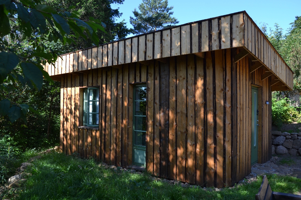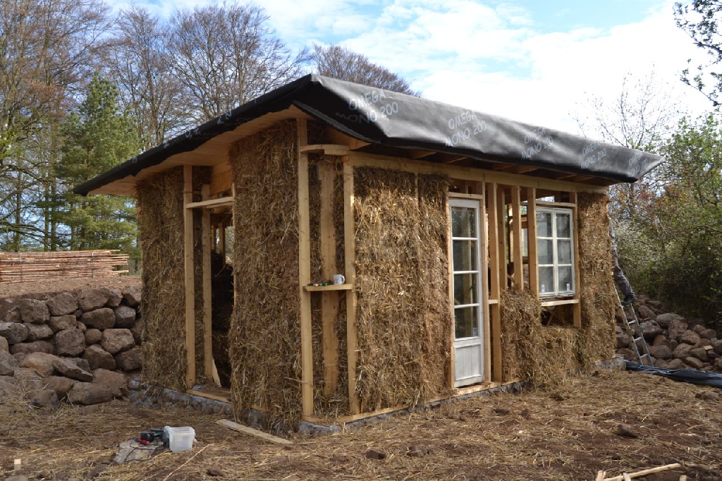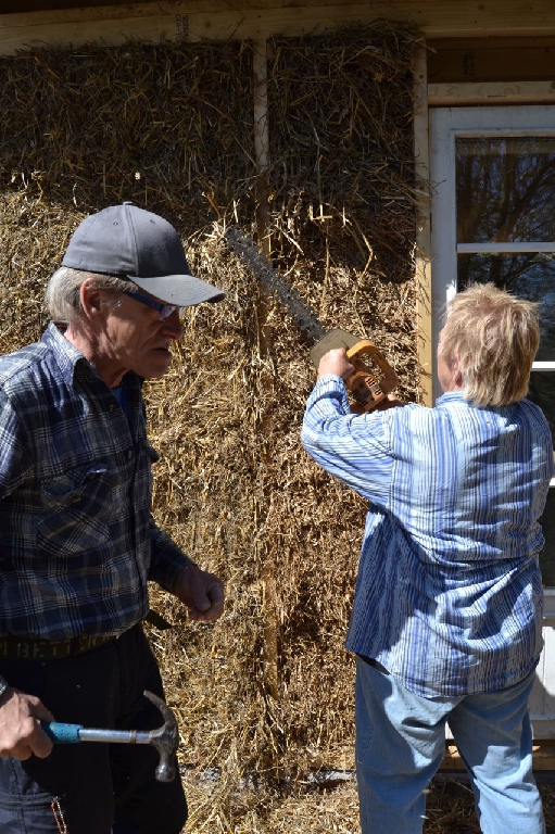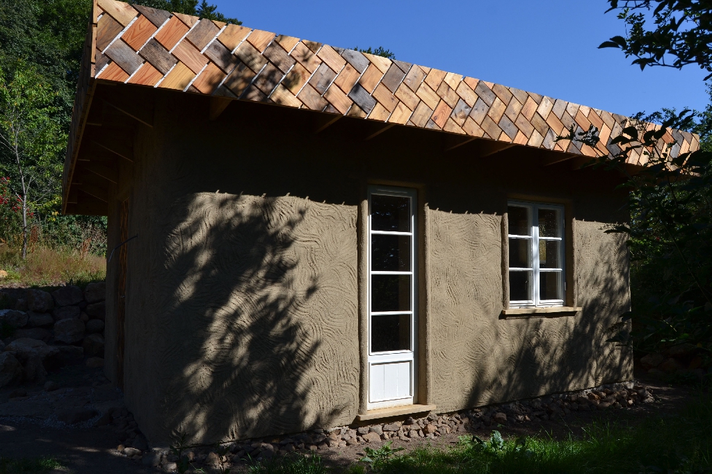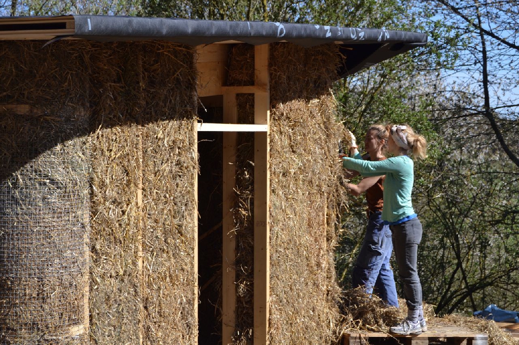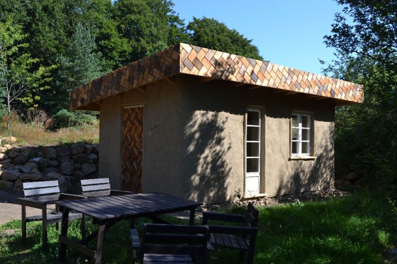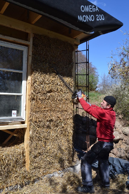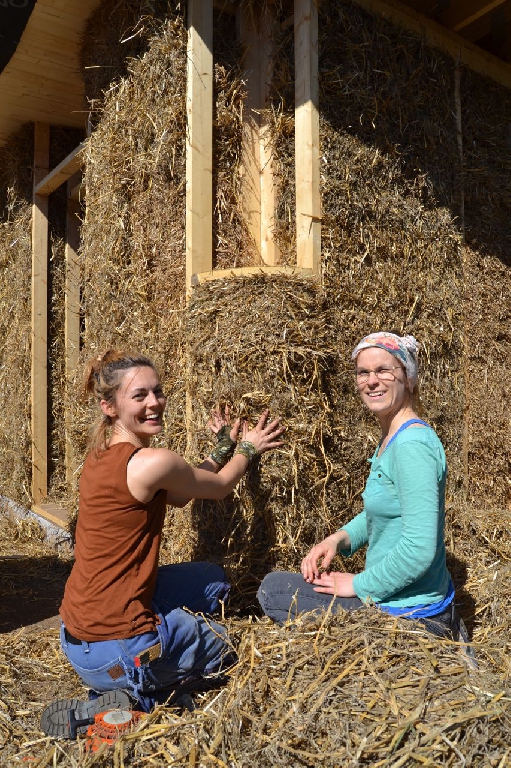 Diese beiden kleinen Strohballenbauten entstanden im Rahmen eines einwöchigen Workshops, geleitet vom ASBN (Herbert Gruber & Gerhard Scherbaum). Die Ballen wurden zwischen Holzständer eingefüllt und nach dem Abscheren der Wände direkt mit Lehm verputzt, eine der beiden Gästehütten wurde mit einer hinterlüfteten Holzfassaqde verschalt, bei der anderen bildet der Lehm (vermischt mit ca. 1-2 % Kuhmist) die Fassade. Auch der Boden wurde aus Stampflehm gefertigt. Bauherrin ist die schwedische Umweltschutzorganisation Ecotopia unter Federführung von Karin Malmgren.