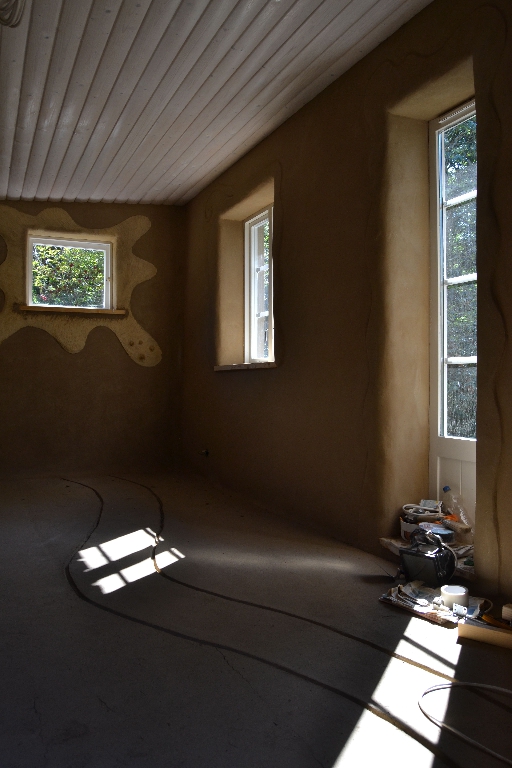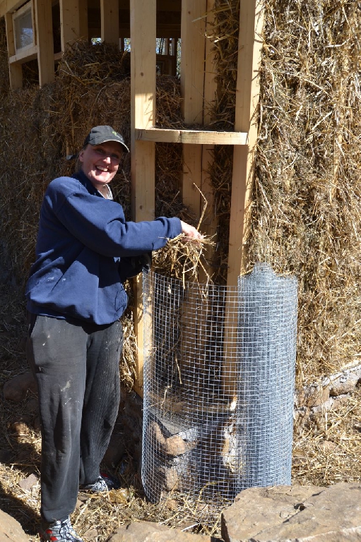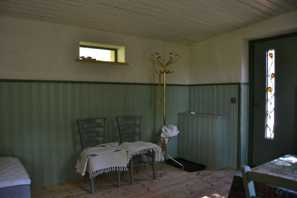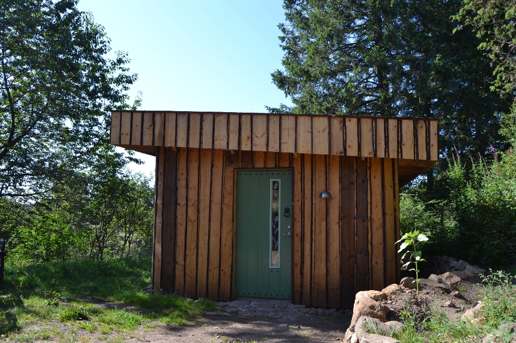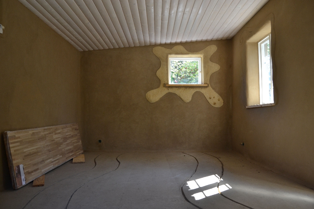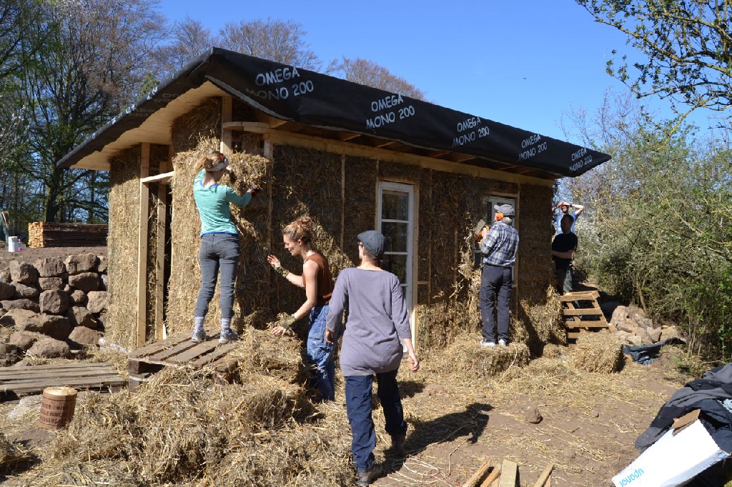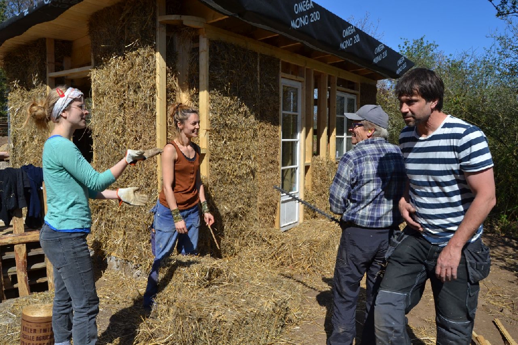 Diese beiden kleinen Strohballenbauten entstanden im Rahmen eines einwöchigen Workshops, geleitet vom ASBN (Herbert Gruber & Gerhard Scherbaum). Die Ballen wurden zwischen Holzständer eingefüllt und nach dem Abscheren der Wände direkt mit Lehm verputzt, eine der beiden Gästehütten wurde mit einer hinterlüfteten Holzfassaqde verschalt, bei der anderen bildet der Lehm (vermischt mit ca. 1-2 % Kuhmist) die Fassade. Auch der Boden wurde aus Stampflehm gefertigt. Bauherrin ist die schwedische Umweltschutzorganisation Ecotopia unter Federführung von Karin Malmgren.