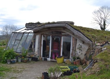 Der zweistöckige Eingangsbereich dieses Hauses des Architekten und Strohballenbauers René Dalmeijer ist mit Strohballen ausgeführt. Fotos: Herbert Gruber/asbn