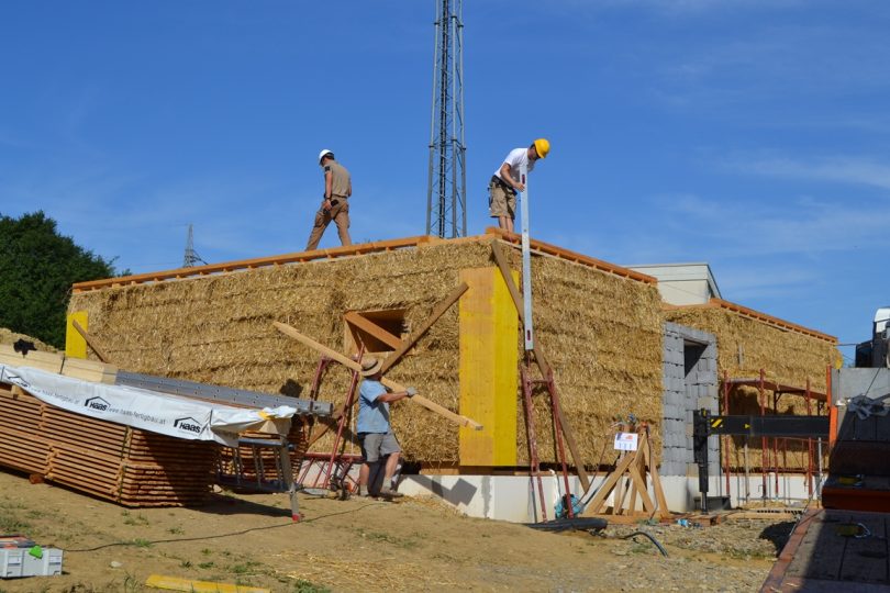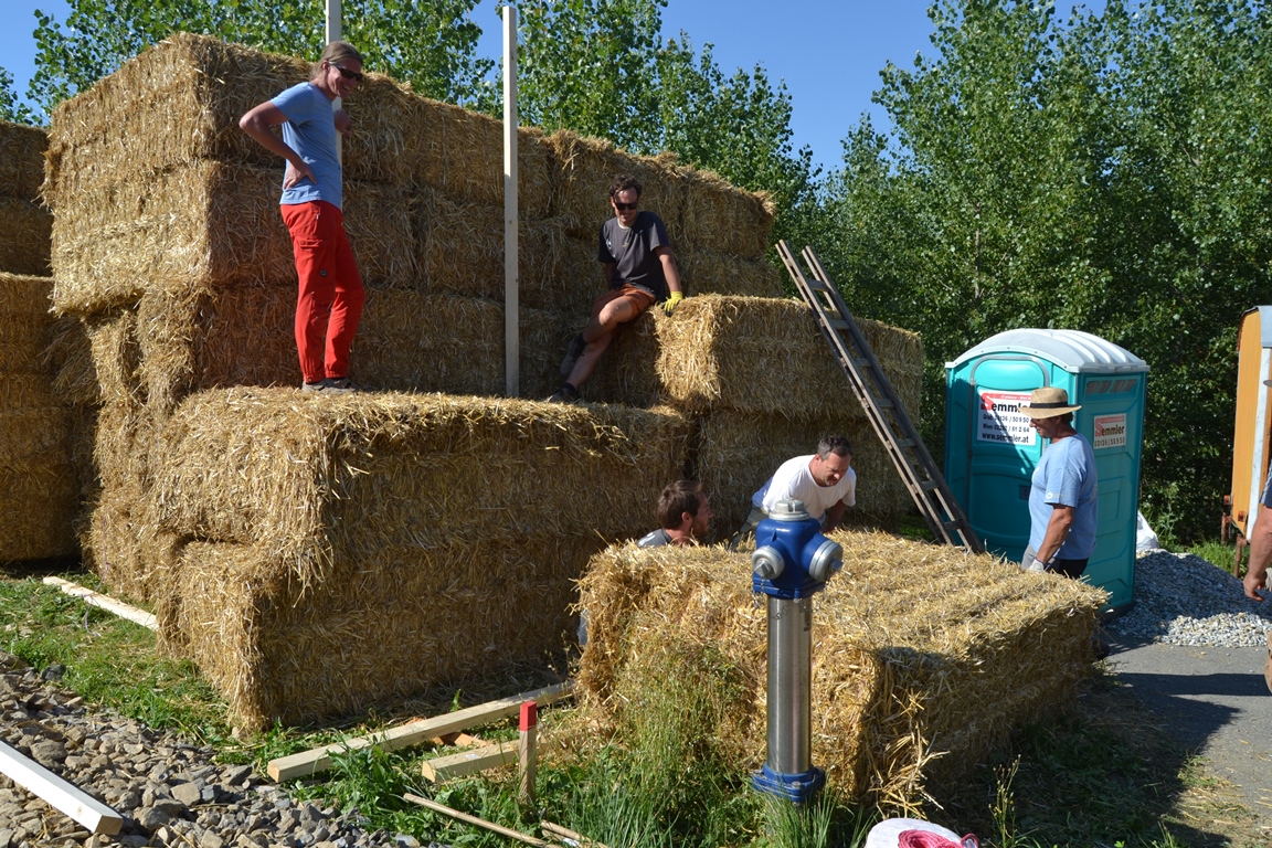 Im Juli 2017 wurde dieses lasttragende Strohballenhaus in Fürstenfeld mit Großballen errichtet. Der Praktische Workshop ist Teil des STEP-Lehrgangs Modul 3: Lasttragender Strohballenbau (Infos siehe dort – Modul 3).