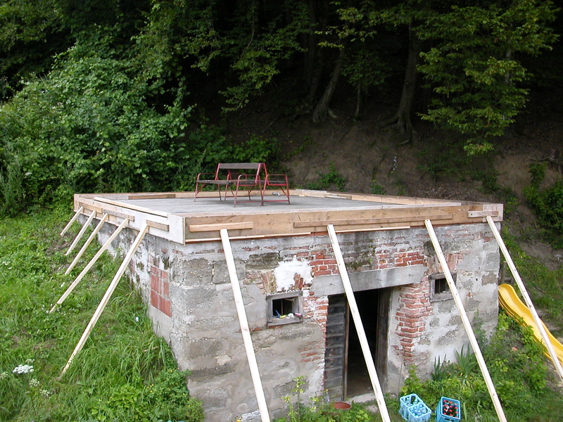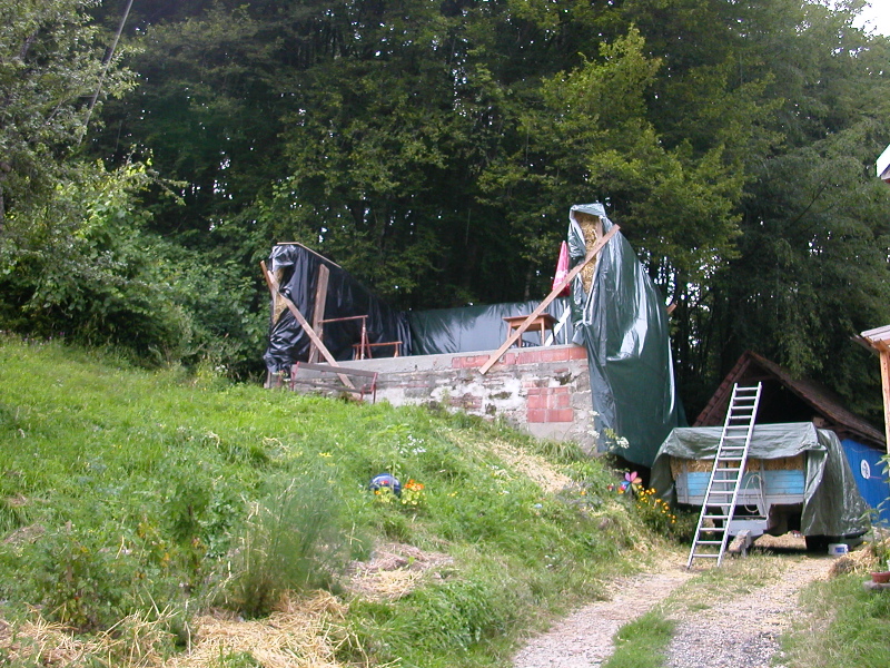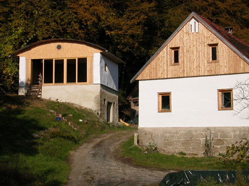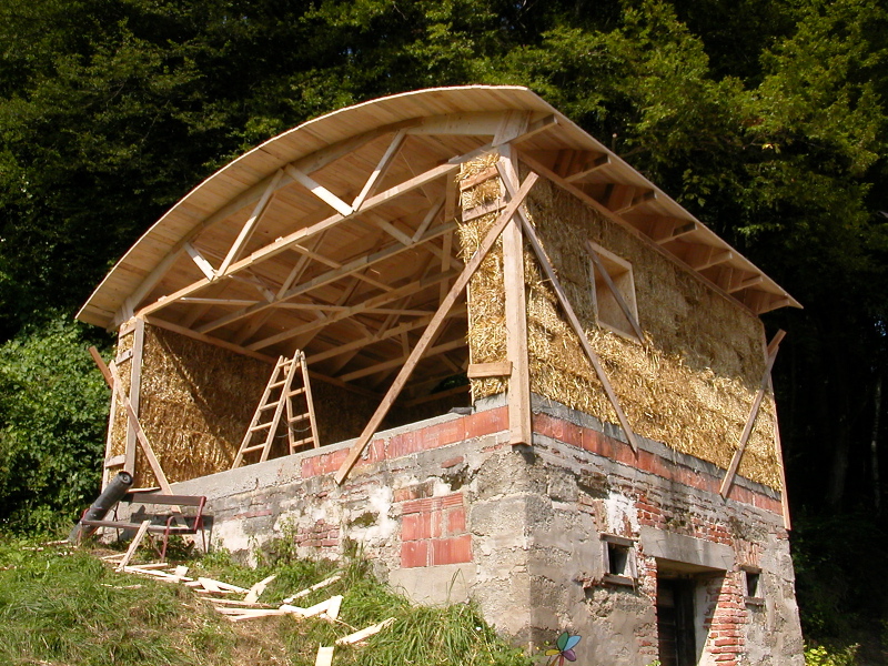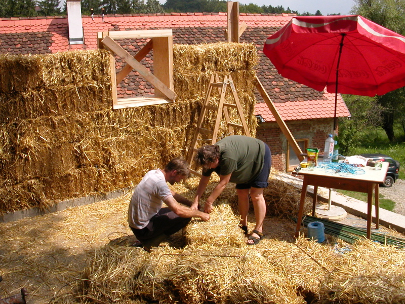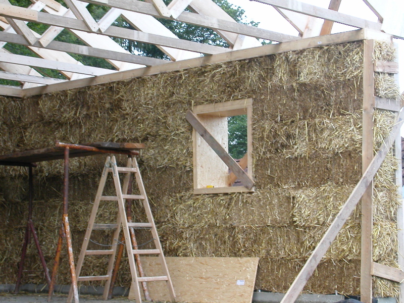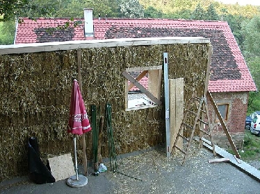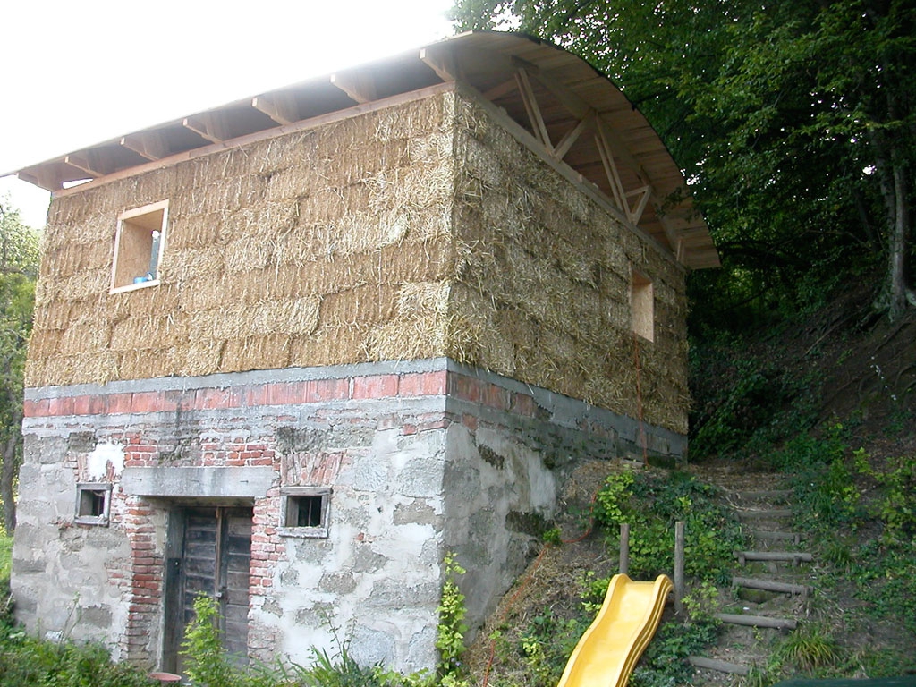 Auf einem Keller wurde ein 42 m2 großer, lasttragender Strohballenbau errichtet.