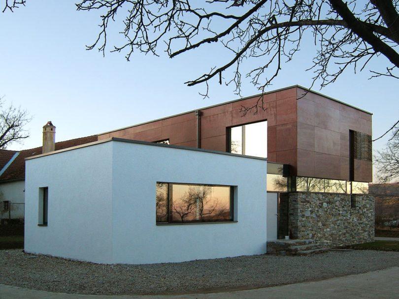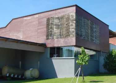 Bei diesem Einfamilienhaus wurden die Wandelemente des Obergeschosses mit 35 cm und die Dachkonstruktion mit 50 cm Weizenstrohballen gedämmt. Anerkennung für vorbildliches Bauen in NÖ.