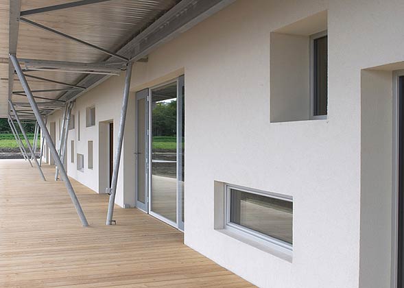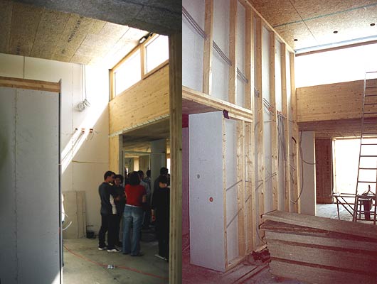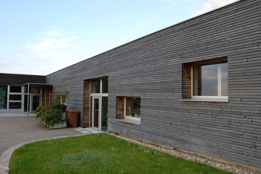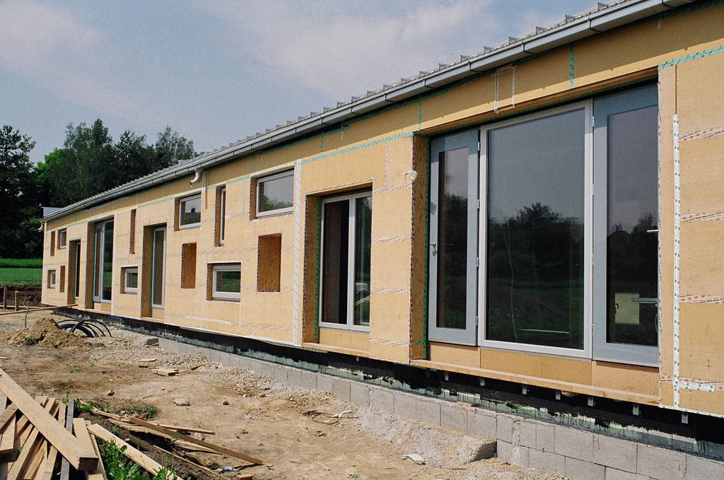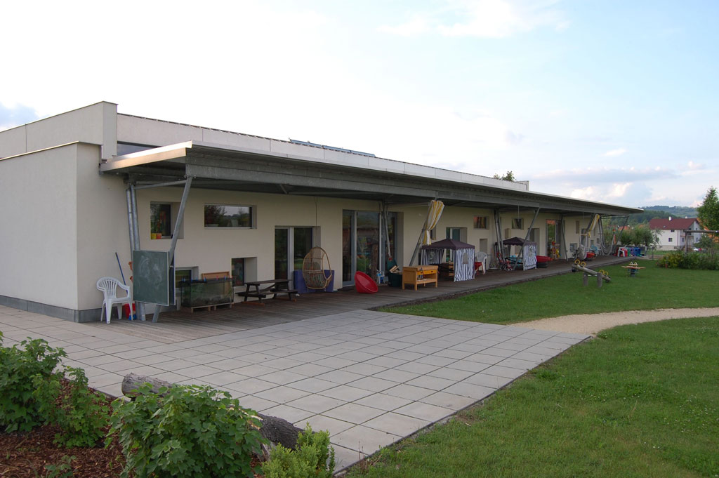 Anlässlich eines Haus der Zukunft-Projektes wurde dieser erste Passivhaus-Kindergarten Österreichs in Ziersdorf errichtet, bei dem allerdings nur die Südwand mit Strohballen gedämmt wurde. Fotos: ah3 Architekten, Bernhard Diesner, Herbert Gruber/asbn (fertiger Bau)