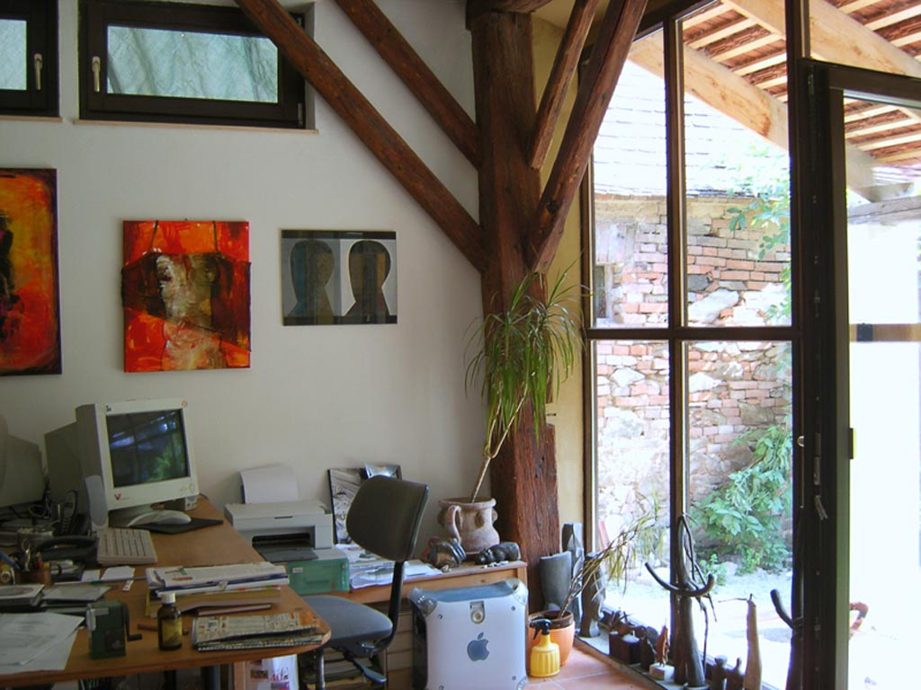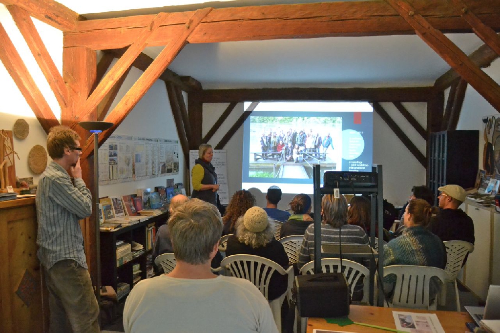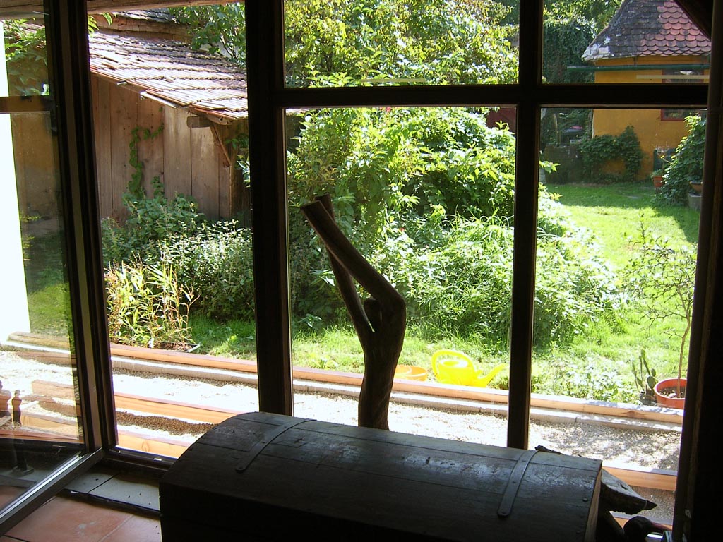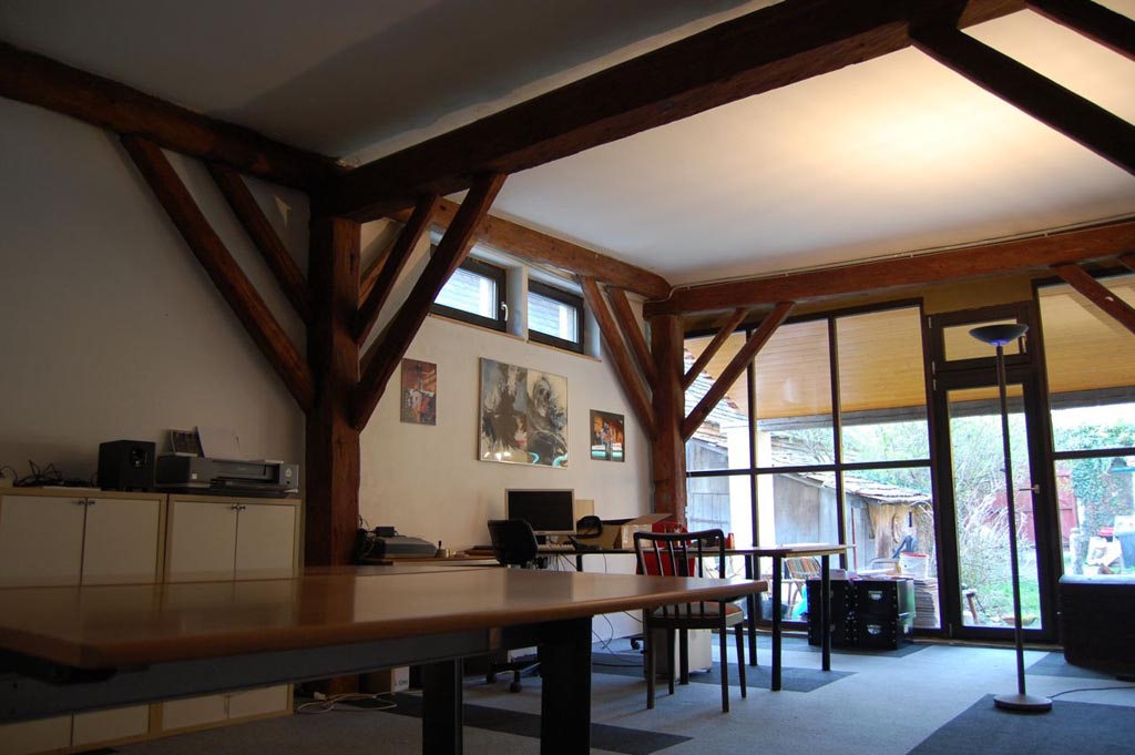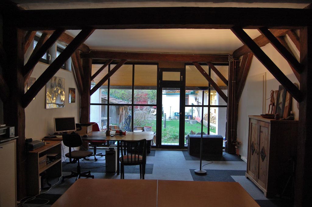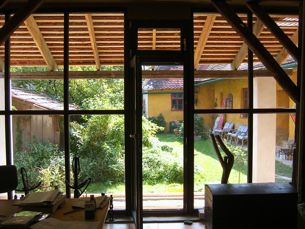 In größtenteils Eigenleistung (Herbert Gruber & Freunde) entstand dieses stimmige Büro, das bei den asbn-Workshops auch als Seminar- und Präsentationsraum dient: die alte Konstruktion ist innerhalb der neuen Strohballenwände sichtbar, ein besonderes Flair…