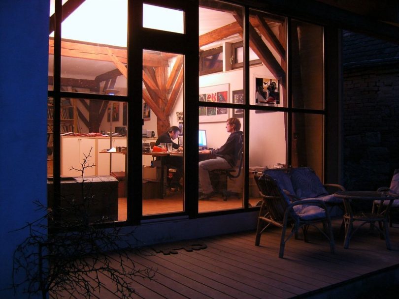 In größtenteils Eigenleistung (Herbert Gruber & Freunde) entstand dieses stimmige Büro, das bei den asbn-Workshops auch als Seminar- und Präsentationsraum dient: die alte Konstruktion ist innerhalb der neuen Strohballenwände sichtbar, ein besonderes Flair…