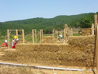 Lasttragendes Seminargebäude für den Ökolandbauverein Bugday nähe Istanbul. Planung und Ausführung: ArchitekturstudentInnen unter Leitung von Arda Sander (Kültür Üniversitesi, Istanbul) und Friederike Fuchs (STROH unlimited, Fotos)