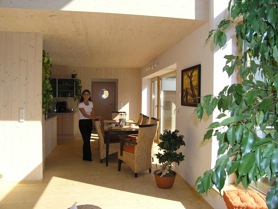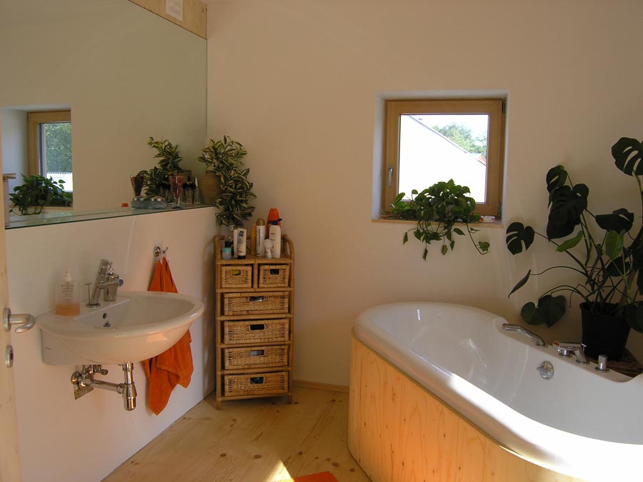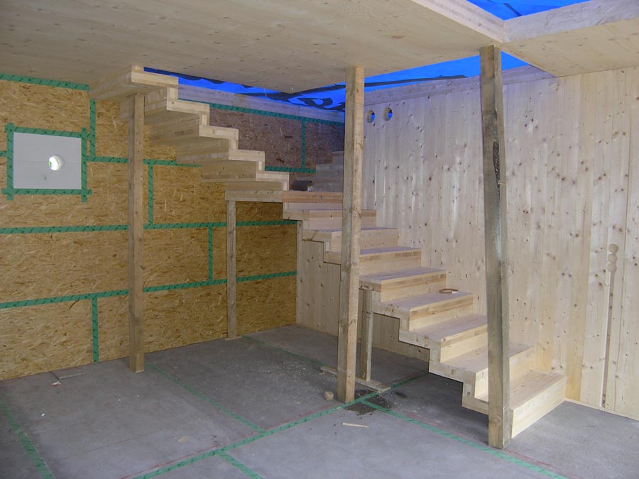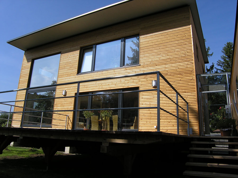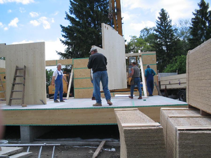 Ein sehr schönes Strohballenhaus, das 2008 auch mit der Goldenen Kelle ausgezeichnet wurde. Mit strohballendedämmter Bodenplatte auf Punktfundamenten.