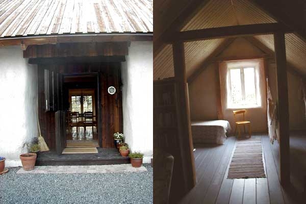Ein Strohballen-Bau des norwegischen Netzwerkers Arild Berg (Mitarbeiter im Büro Arch. Rolf Jacobson). Kalkputz außen, Lehmputz innen. Ökologisch Wohnen in Norwegen mit Holzstöckelpflaster (wie Ziegel am Boden verlegt), einem offenen Kamin und viel naturbelassenem Holz… Fotos: © Arild Berg, Info