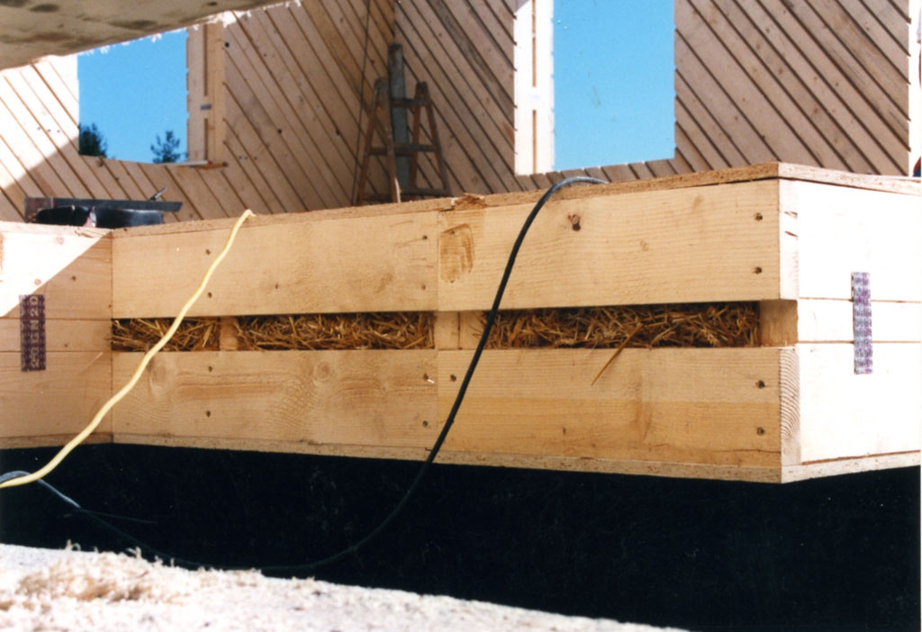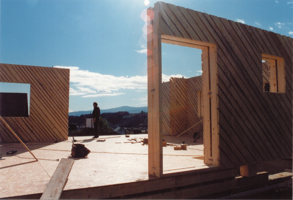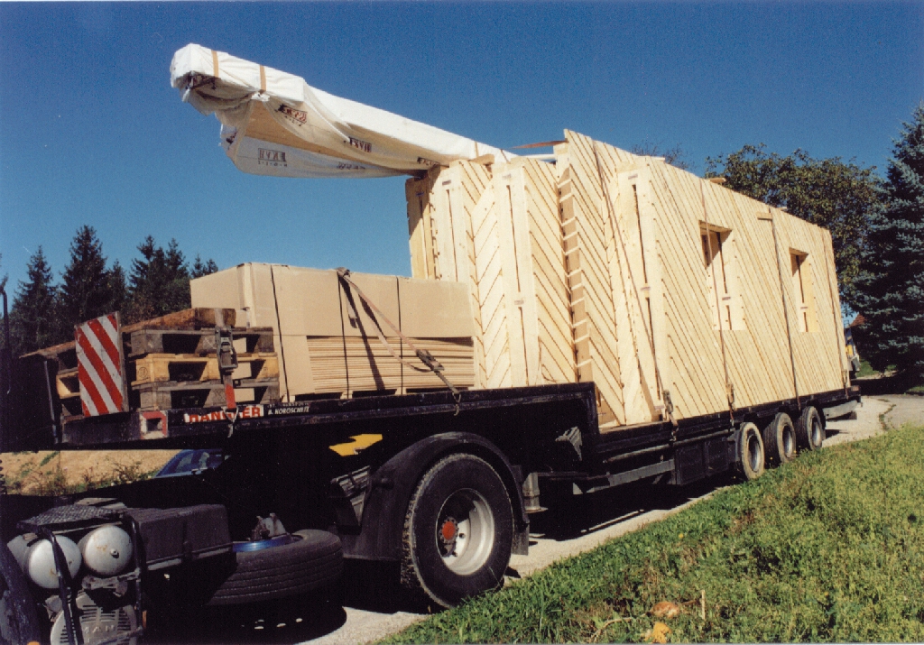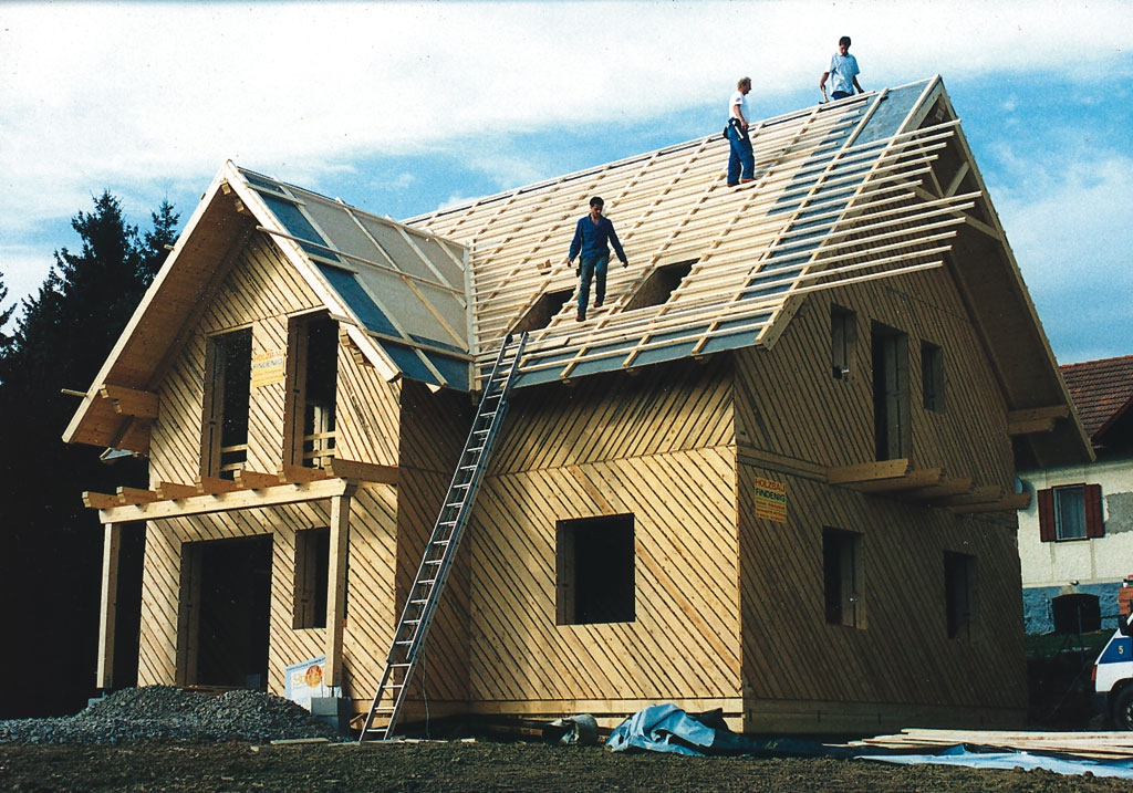 Das erste Holzständer-Strohballen-Haus (1999) Österreichs in der Nähe von Graz, zweigeschossiges Wohnhaus mit ca 150 m2 Wohnfäche, in Fertigteil-Bauweise errichtet. Die Zimmerei Poms (Nachfolger von Findenig) baut nach wie vor Strohballenhäuser (in Kärnten).