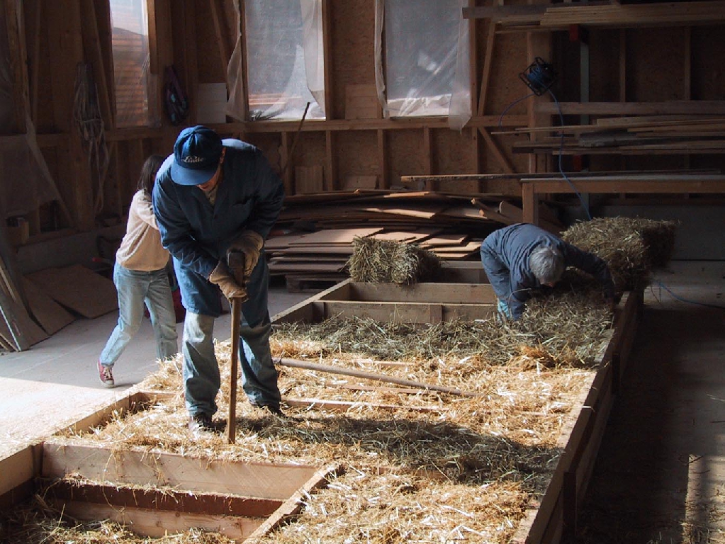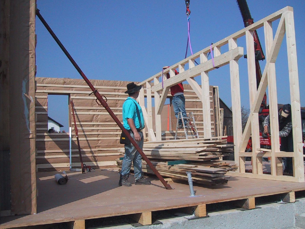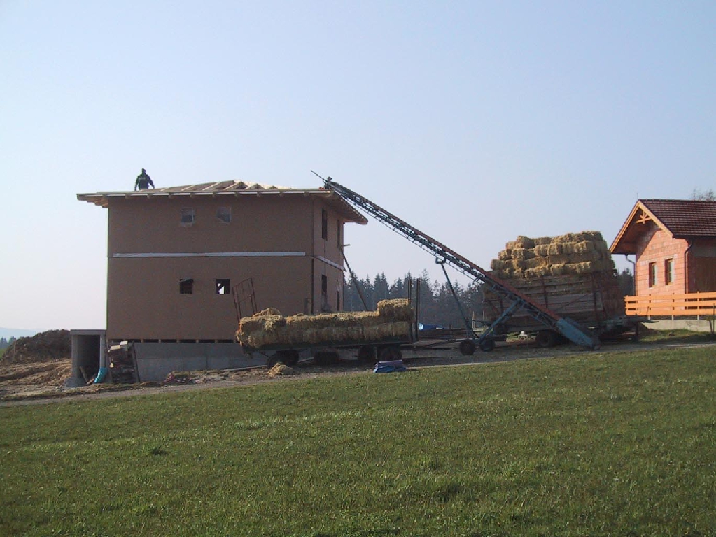 Holzständerkonstruktion mit Strohballendämmung in Wand und Dach. Fotos: Planungsbüro Spreitzer