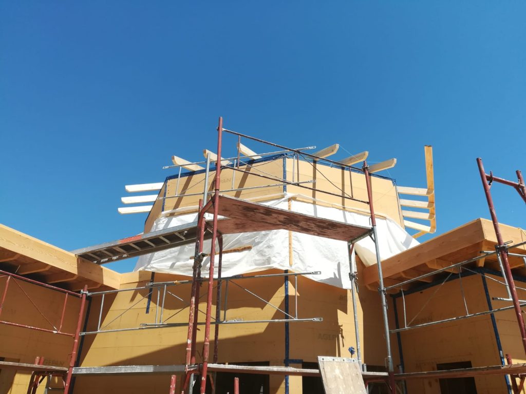 2019 haben wir dieses Strohballenhaus mit reziprokem Dach in Kärnten unter Mithilfe des Bauherrn David Kosche errichtet.