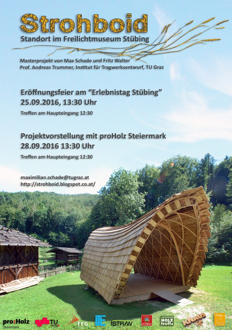 „Eine leichte Holzgitterkonstruktion, darauf Strohballen, Lehm und Holzschindeln – fertig ist das Haus der Zukunft.“ So einfach ist das Konzept des Gewölbebausystems „Strohboid“, welches im Rahmen einer Masterarbeit am Institut für Tragwerksentwurf der TU Graz von den Studierenden Max Schade und Fritz Walter gemeinsam mit Prof. Andreas Trummer entwickelt wurde.