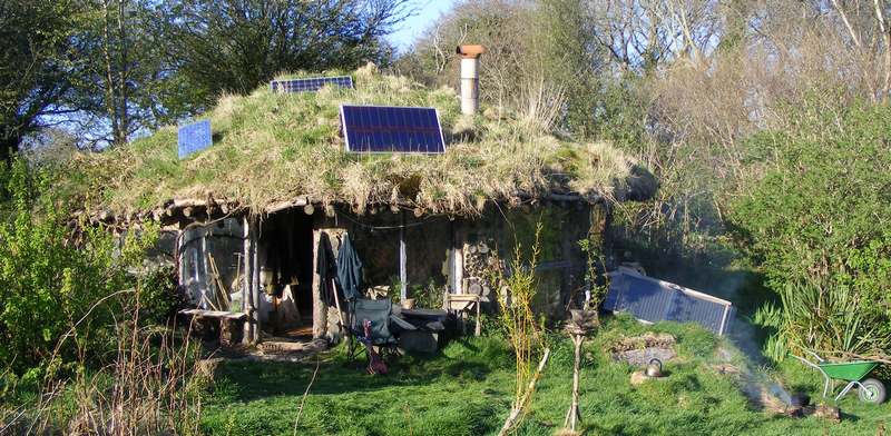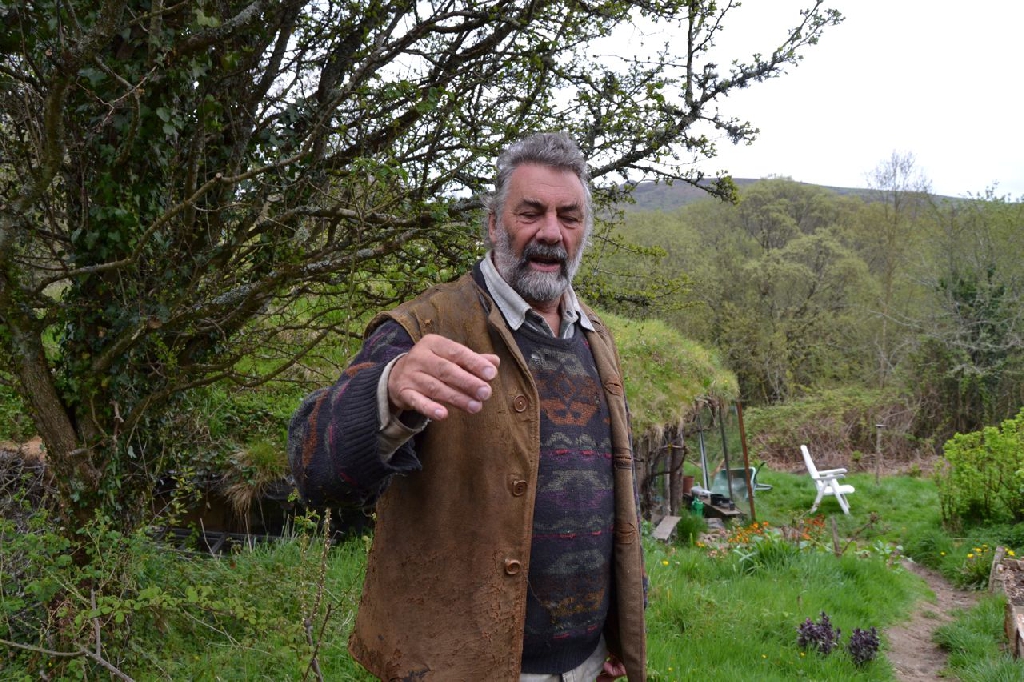 Tony Wrench ist ein Aussteiger. Permakulturexperte. Und er weiß ganz genau was er tut. Er lebt in diesem Low-Cost-Eigenbau mit ein paar Palletten am Boden und Schaffellen darauf (als Isolierung), schwört auf sein Gründach, die Baumaterialien holt er sich aus dem Wald, das Warmwasser wird mit einem alten Badeofen bereitet, gebadet wird nacheinander, er hat was er braucht. Dass dieses Leben nur ohne Kinder funktioniert, ist ihm klar (die sind schon erwachsen). Seine einzige Verbindung zur Außenwelt (dem kleinen Dorf Brith dir Mawr in Wales) ist ein Kabel für seine Internetverbindung (schließlich lebt er hauptsächlich von seinem Buchverkauf über seine Website). Fotos: Herbert Gruber/asbn, Tony Wrench (letztes Bild).