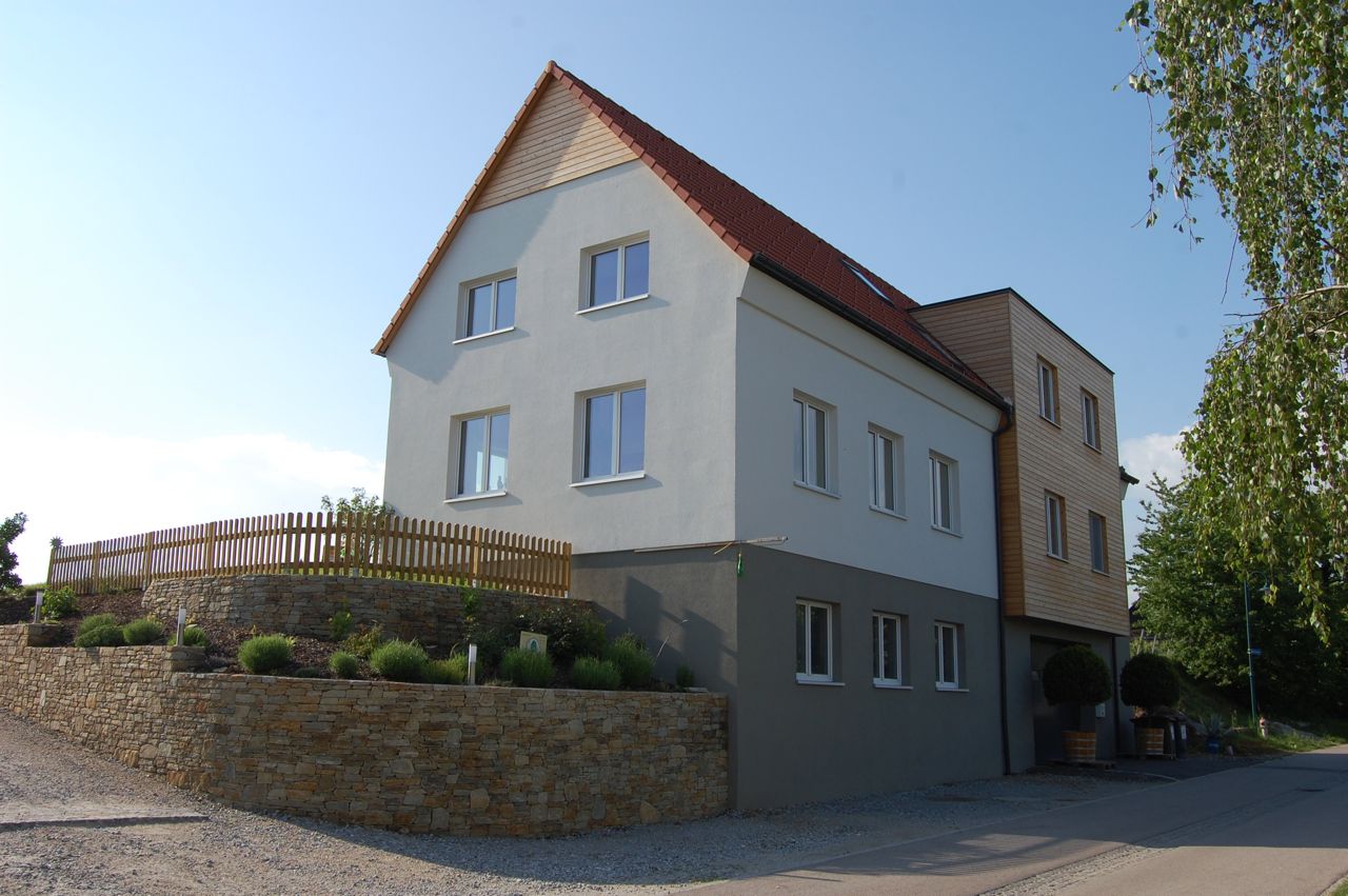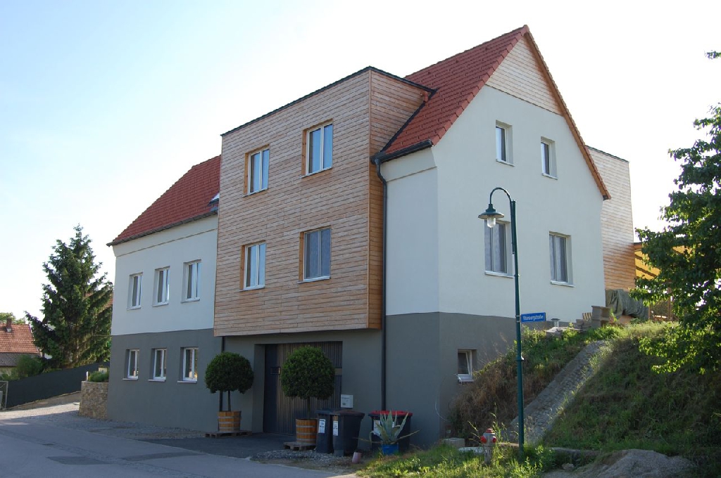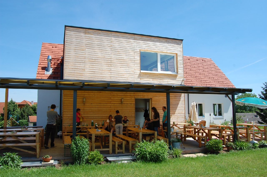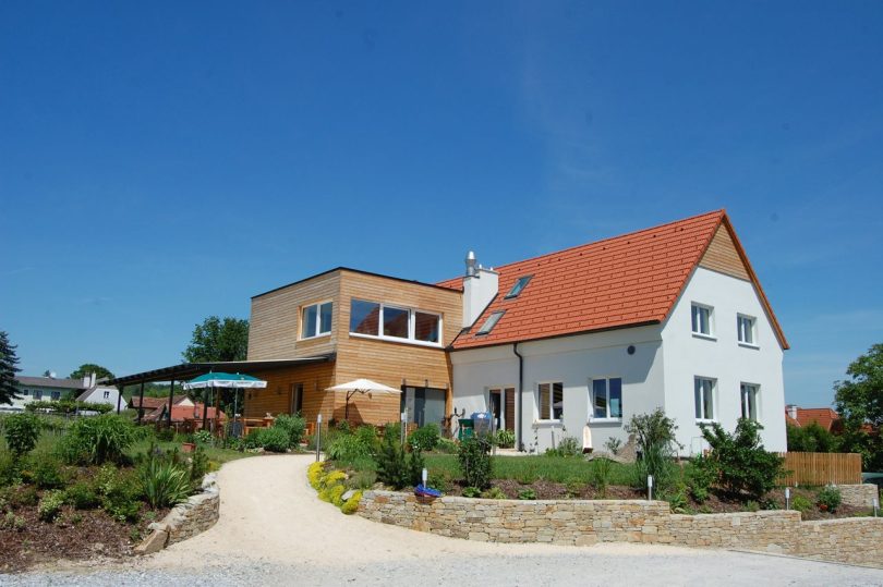 Zum größten Teil in Strohballenbauweise wurde dieses Betriebsgebäude – das Weingut und Heurigenlokal Piller – 2009 errichtet.