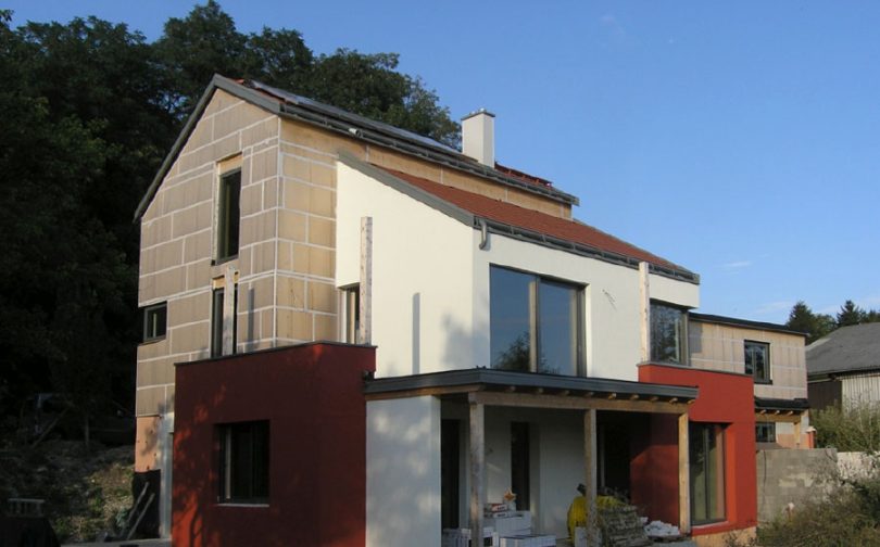 Eine leichte Hanglage, Bauklasse I und der Wunsch nach bestem Wohnkomfort waren die Vorgaben für den stark gegliederten Baukörper. Von der Wohnebene mit zweigeschossigem Wohnraum mit Büchergalerie und den südseitig vorgelagerten Dachterrassen lässt sich die umliegende Landschaft genießen. Geschlafen und gewellnesst wird im Untergeschoß mit direktem Zugang zum Garten.